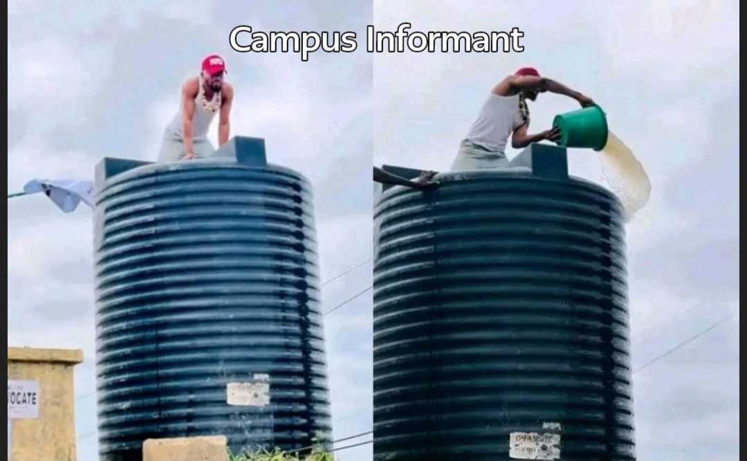 Federal Polytechnic Bida SUG Candidate Seen Cleaning Hostel Tanks in Preparation for the SUG Elections: A Student Union Government (SUG) candidate at the Federal Polytechnic Bida was seen washing hostel water tanks during the election period. Wearing a simple T-shirt and jeans, the candidate worked hard under the hot sun to clean the tanks near the student hostels.