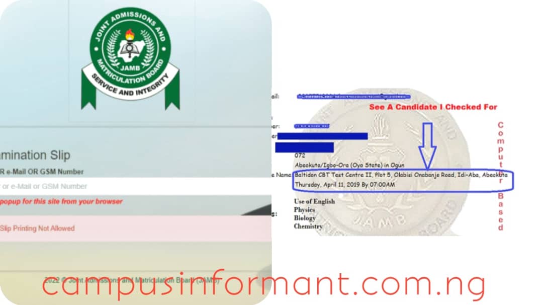 After printing the slip, you will see the exact exam date, time, and CBT center where your UTME examination will take place.