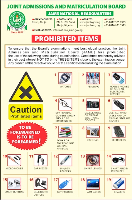 As the 2026 UTME begins from April 16 to April 25, the Joint Admissions and Matriculation Board (JAMB) has released clear rules on what candidates are allowed to bring into the exam hall and what is strictly prohibited.