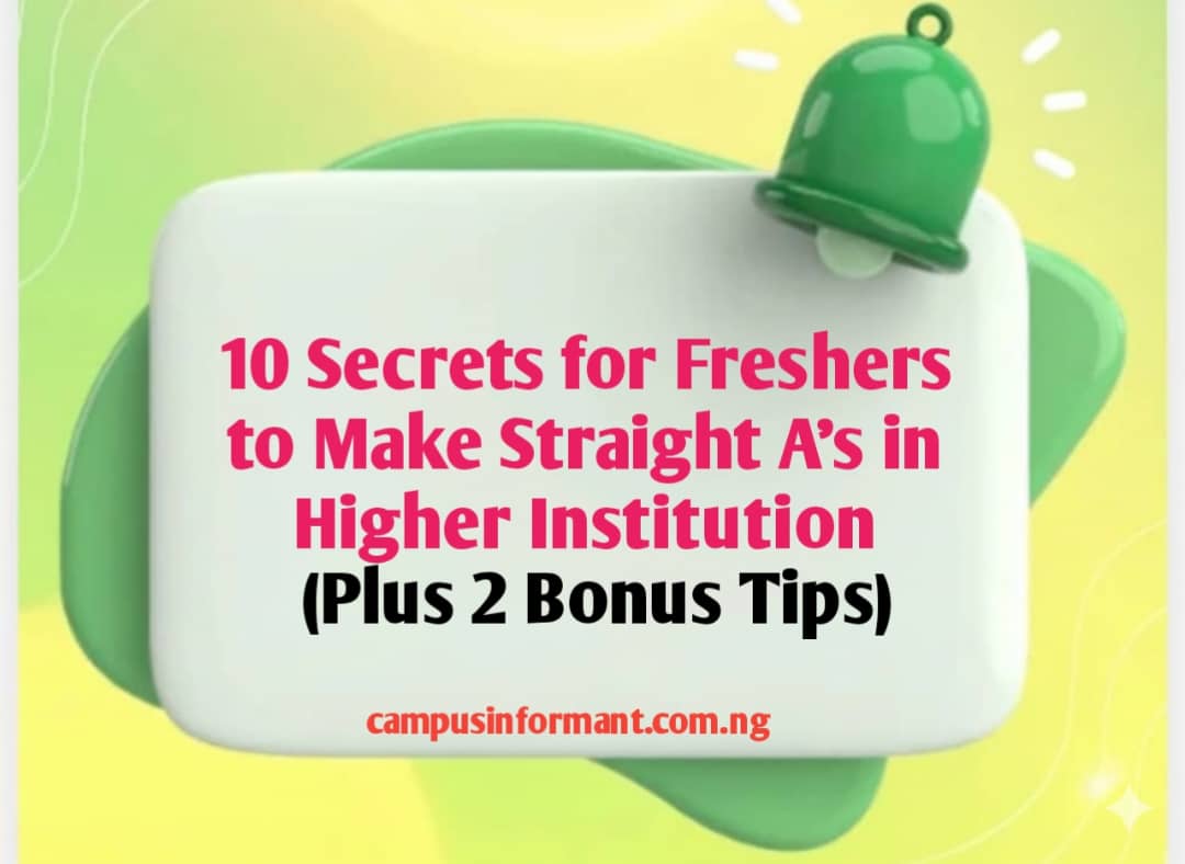 10 Secrets for Freshers to Make Straight A’s in Higher Institution (Plus 2 Bonus Tips)
