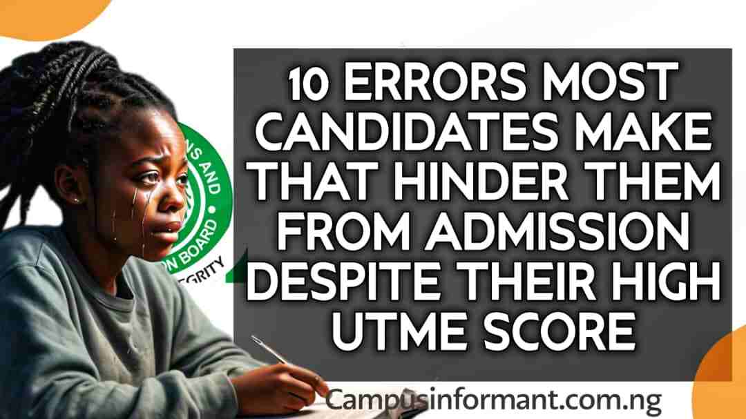 10 Errors most Candidates make that hinder them from admission despite their High UTME score