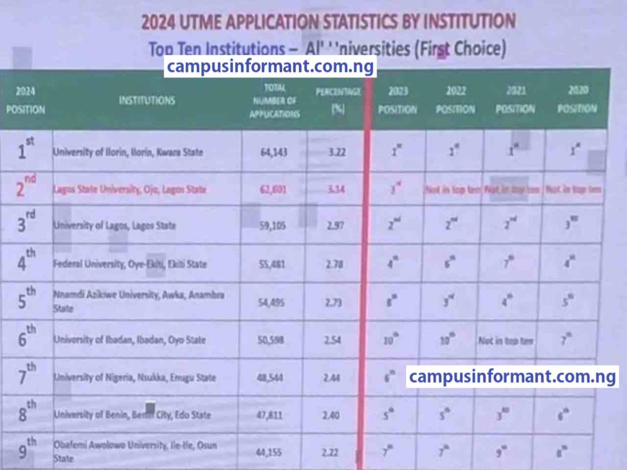 JUST IN: JAMB has Announced the top 10 most applied universities for 2024/2025