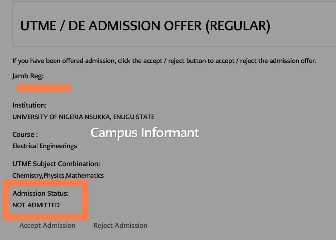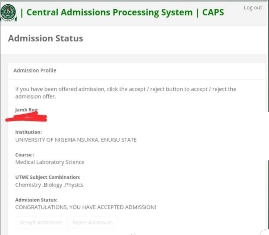 From admissions in progress your JAMB CAPS will change to “Congratulations you have been offered Admission” when you accept your admission your JAMB caps will change to this “Congratulations you have accepted your admission”
